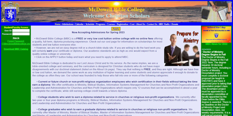 Church Provider McDowell Bible College 923 Vanderbilt St. Birmingham, AL 35206