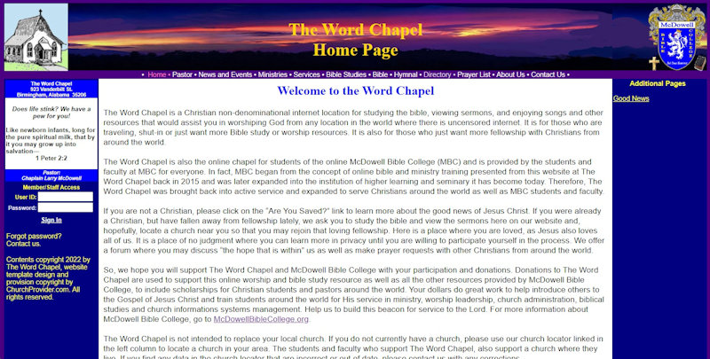 Most Innovative and Dynamic - Church Provider spun off from GP&S to be dedicated to churches to provide a user friendly, automated website presence on-line with the ability to maintain their important resources and information, as well as provide one of the most flexible dynamic means to change website appearance. Church Provider began with our first site, TheWordChapel.org, in 2015 which you can still view. All websites are generated for you and you can easily select and change appearance and content without any knowledge of website design and programming. Unlike secular providers and other automated website generators, Church Provider only works with churches to provide you with real service and features that you need.